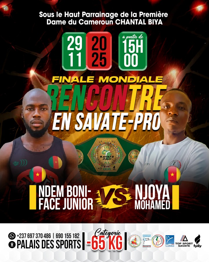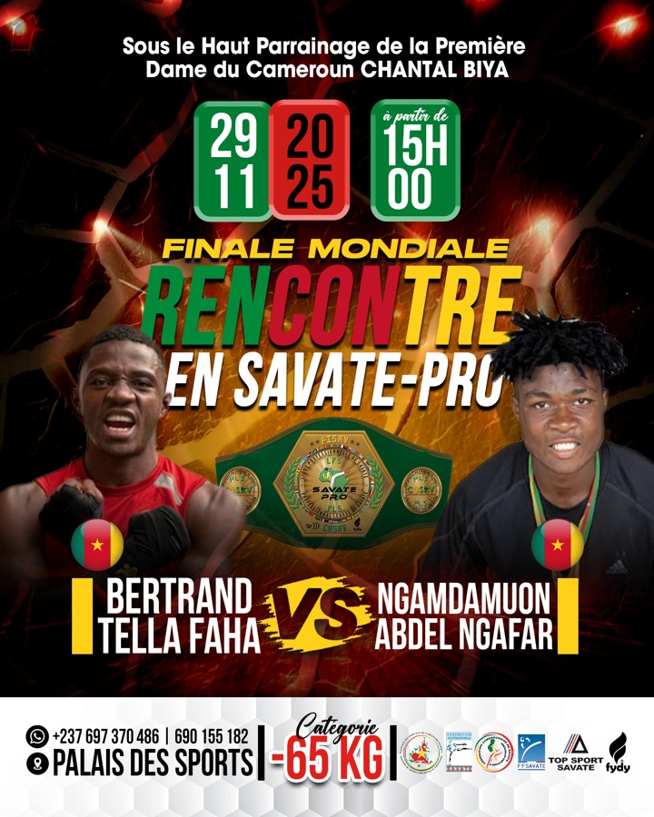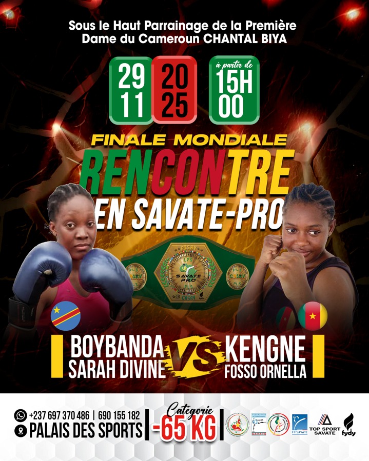 Toujours sous le Haut Parrainage de la Première Dame Chantal BIYA, la capitale vibrera au rythme d’une confrontation exceptionnelle pour une ceinture mondiale de Savate-Pro.